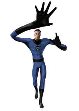 A member of the Fantastic Four, Reed Richards received the powers of amazing elasticity after being bathed in cosmic rays. He uses his ability to stretch his body seemingly infinite lengths to form giant fists, shrug off attacks, and form various shapes to traverse the environment. In addition to his super powers, he also possesses incredible intellect, capable of creating and wielding amazing inventions that have saved the universe countless times.