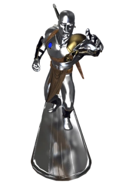 In order to save his planet Zenn-La from being consumed by the cosmic being known as Galactus, Norrin Radd agreed to become Galactus' herald, surfing the skyways to find planets for his master to consume (and letting the population know of their impending doom.) After meeting the the human Alicia Masters, Silver Surfer realized that his role as Galactus' herald was inhumane and assisted the Fantastic Four in stopping his master. Since this momentous occasion, Silver Surfer has spent much time on Earth, using the Power Cosmic to defend the planet (and many other planets) from all kinds of unknown evil.